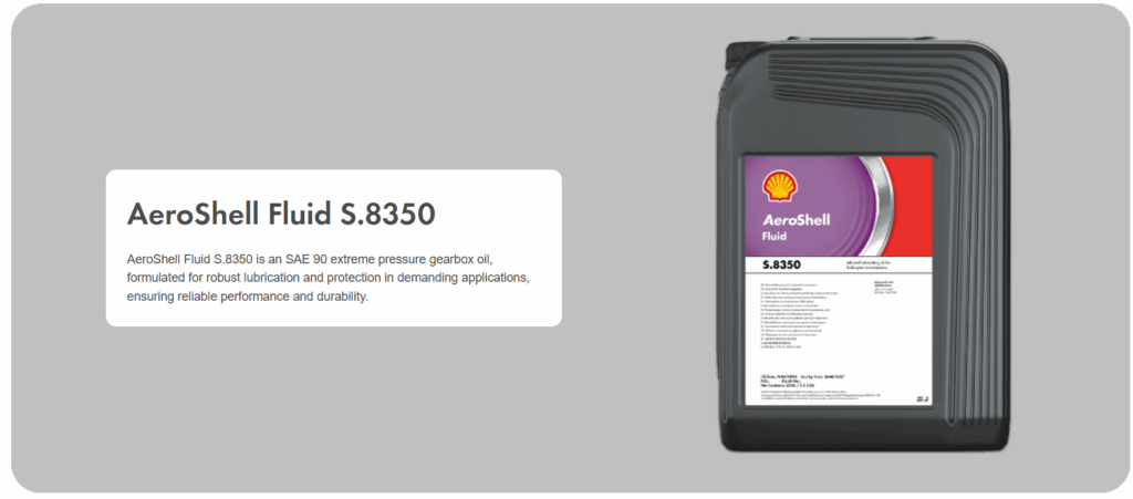 AeroShell Fluid S.8350 is used for helicopter rotor gears, drive-shafts and pitch control mechanisms and wherever high loads and slow speeds in gears require the use of a 90 EP gear oil. AeroShell Fluid S.8350 is approved for use in various Westland helicopter gearboxes.