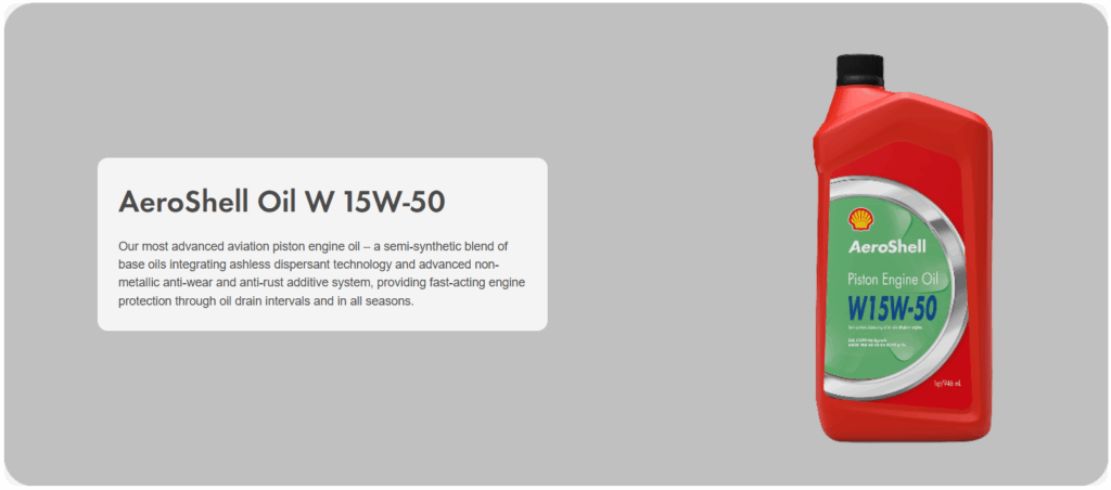 AeroShell Oil W 15W-50 is intended for use in certified four-stroke (four-cycle) aircraft piston engines. AeroShell Oil W 15W-50 is superior to single grade oils in almost every application. It offers easier starting, better lubrication after start-up, reduced wear, reduced corrosion and rusting, and improved cleanliness, with oil pressures and temperatures equal to that of single grade SAE 50 oils at fully warmed up conditions.