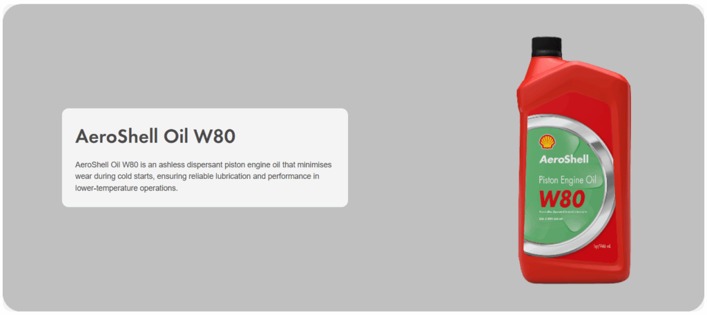 AeroShell Oil W100 or AeroShell Oil W 15W-50 are the common choices for most operators of Lycoming and Continental flat engines but, during colder parts of the year, use of AeroShell Oil W80 in place of AeroShell Oil W100 would be an excellent choice.