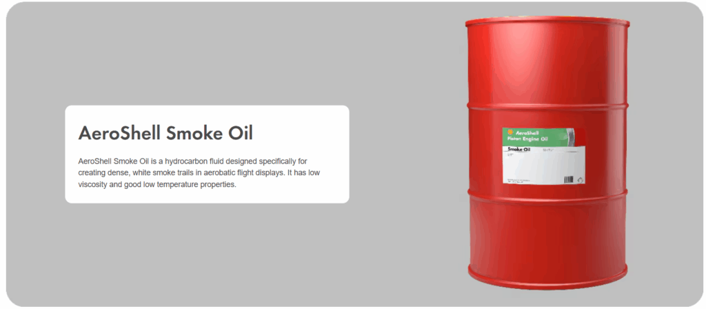 AeroShell Smoke Oil is used for aircraft flying aerobatic and other aerial displays, and to aid the identification of the aircraft or help assess localised air-current behaviour.