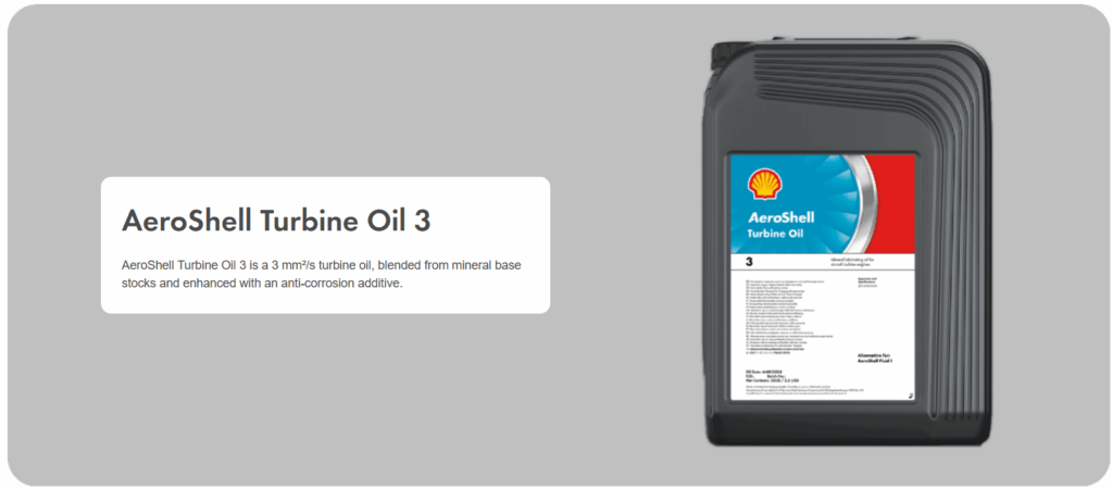 AeroShell Turbine Oil 3 was developed for early pure jet engines and is still approved for some versions of these engines plus the Turbomeca Astazou, Artouste, Turmo, Bastan and Marbore engines.