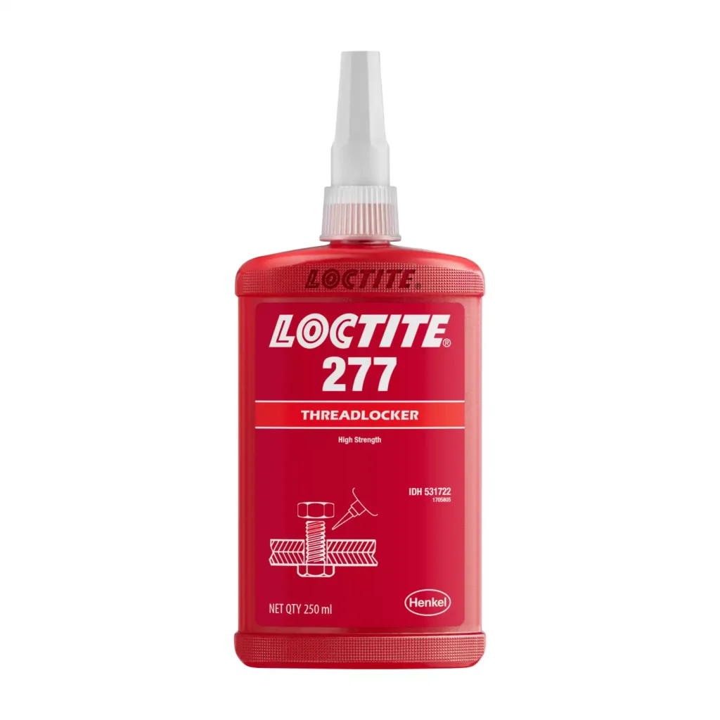LOCTITE® 277 is a red, high strength, high-viscosity threadlocking adhesive especially suitable for large bolts and studs greater than 25 mm (1″). Fluoresces to allow monitoring. Disassembly with heat possible.