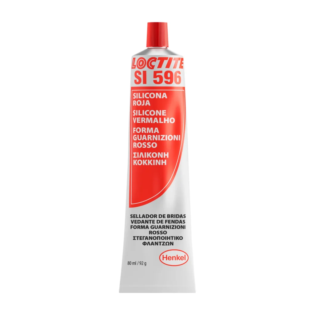 LOCTITE® SI 596 is a red, flowable, smooth, 1-part RTV (room temperature vulcanizing) acetoxy silicone paste sealant that cures at room temperature on exposure to moisture in the air to form a tough, flexible, waterproof, oil-resistant silicone rubber bond. It resists temperatures up to 316°C (600°F), making it well suited for sealing applications in industrial furnaces, ovens, boilers, exhaust stacks, high temperature ducting and heating elements in electrical appliances. It resists aging, weathering and thermal cycling without hardening, shrinking or cracking.